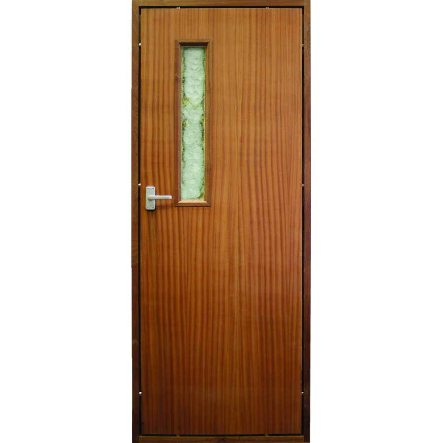 With our intumescent sheets, strips and fire-rated hardware at the hands, all you need is to arrange the Red/White Meranti timber with minimum of 650 kg/m density having moisture content below 10% for door frame and door leaf. We suggest the BR201G MUF powder glue. 6 mm HDF (Density 850 kg/m3) Skin or very high interleave bonded plywood as skin will suit the application.