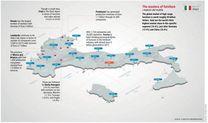 The Italian furniture industry confirms its international leadership, having its engine in the North-East